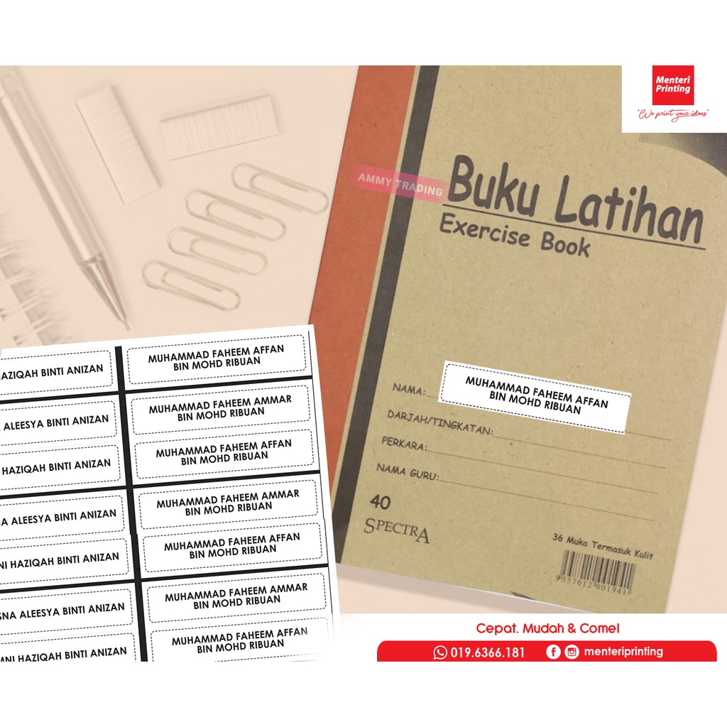 1Label nama buku pelajaran untuk. Nak buat sticker tapi terlalu mahal. Boleh custom print namaayat.